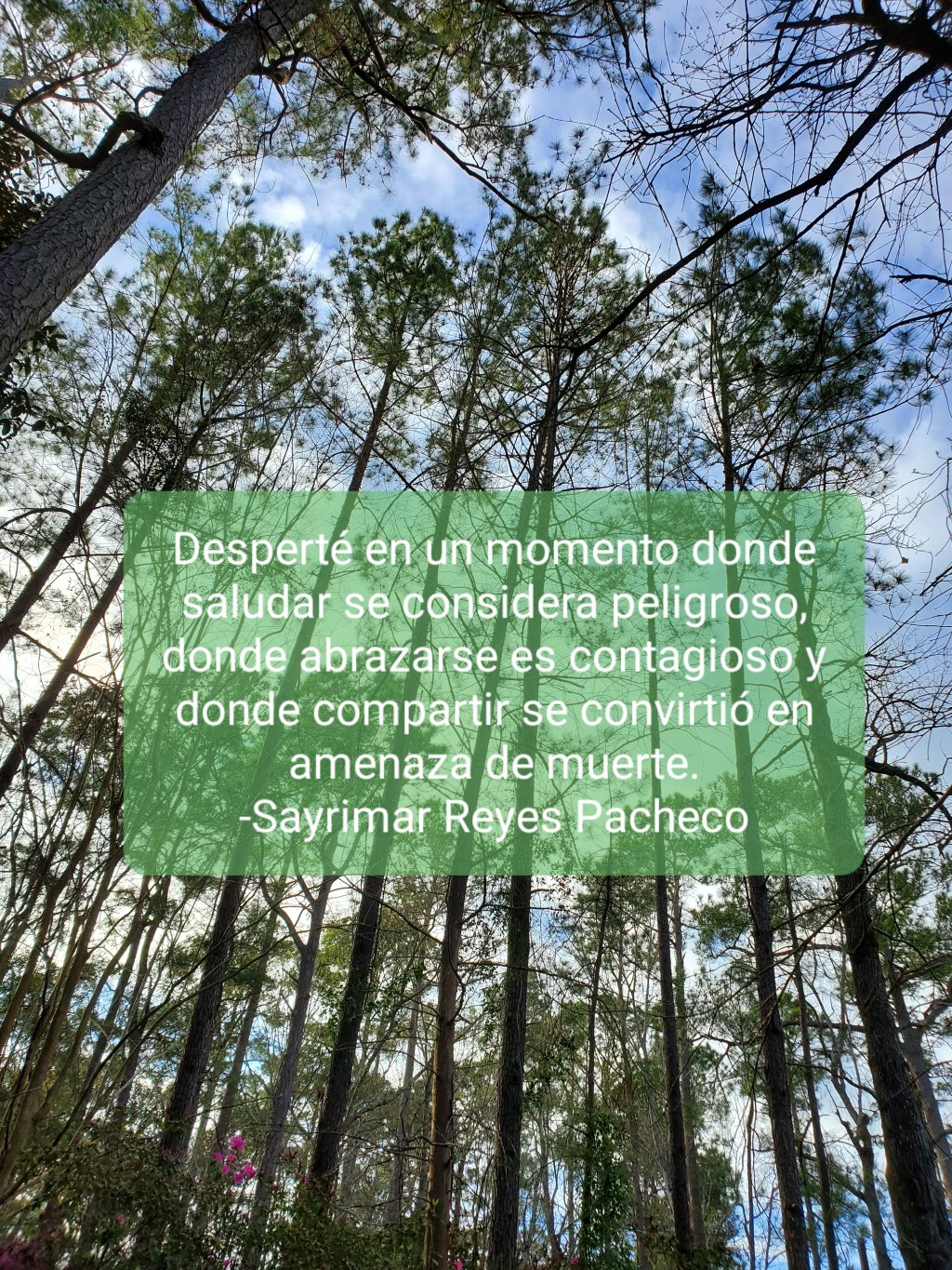 Desperté en un momento donde saludar se considera peligroso, donde abrazarse es contagioso y donde compartir se convirtió en amenaza de muerte. Desperté del sueño americano que hablan los expertos. Me quité la venda de mis ojos en estos momentos donde todo esto esta ocurriendo.